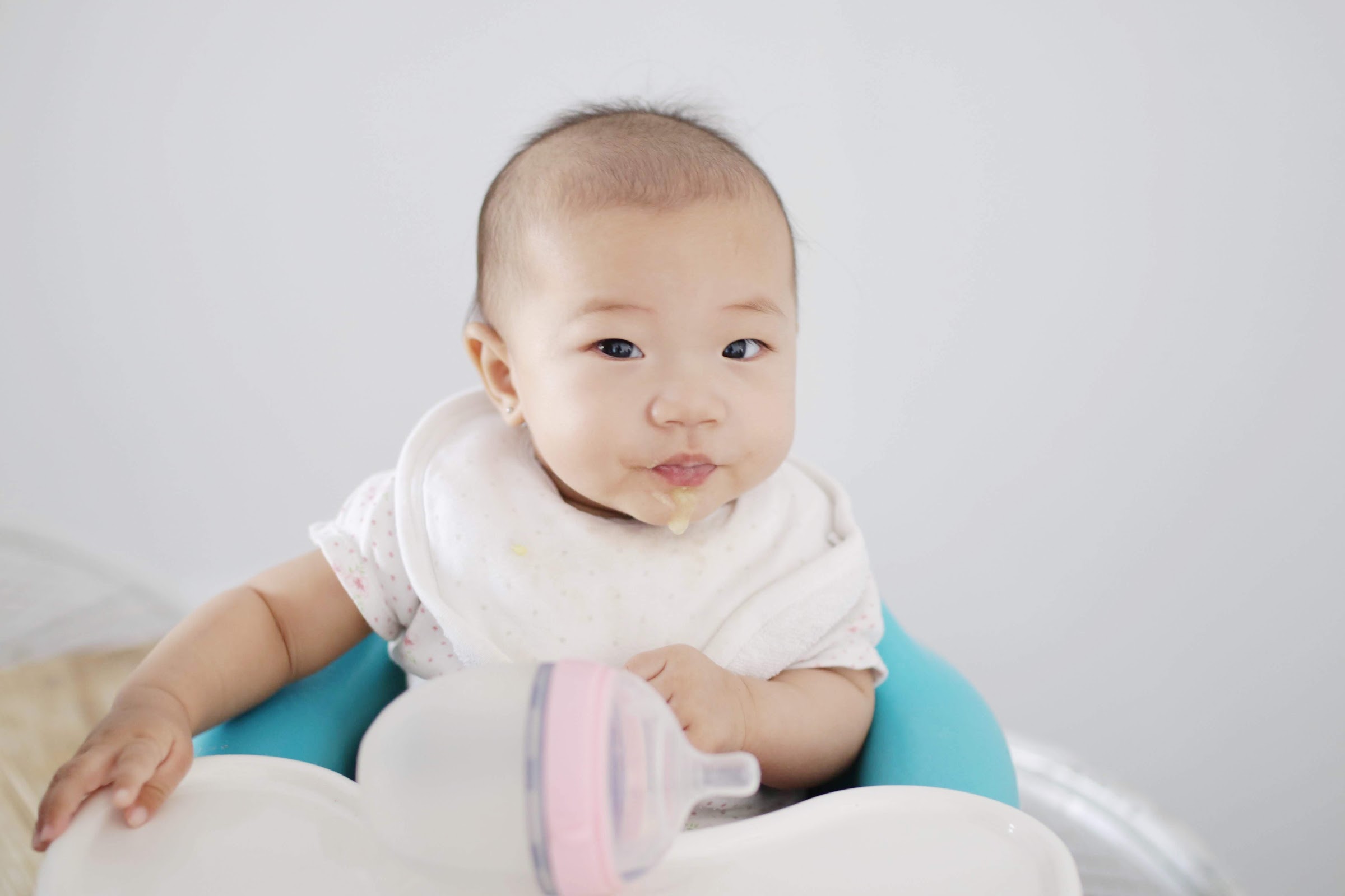 Verity sampled her first zucchini solids two weeks ago. She was quite surprised by the non-milk substance. She wasn't a fan. Love how her feet stick out of the Bumbo; it was actually her first time in it. We borrowed it from a friend as Verity does not sit up well enough in the high chair, with which her older siblings had no problem by the time they each started solids. While her siblings all were keenly interested in food, Verity wasn't. Thankfully that has changed in the last two weeks.